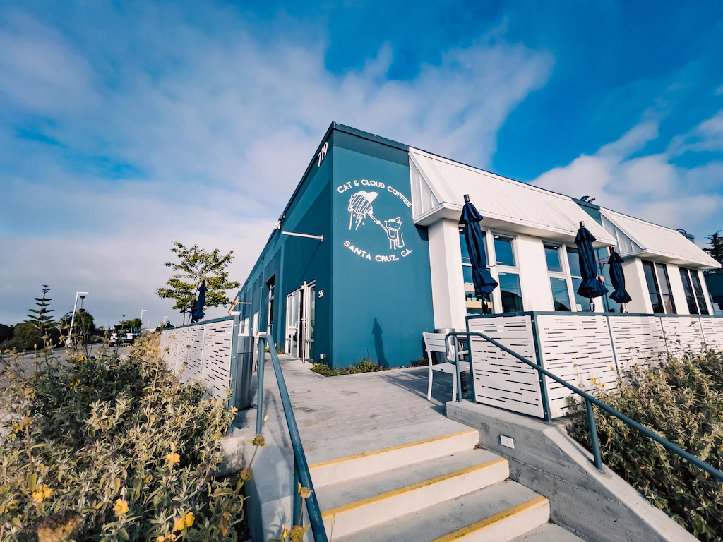 Aptos is the bright, standalone outpost in Aptos, close to Nisene Marks State Park, designed with a bigger footprint and a more vibrant, sun-washed mood than the earlier rooms. Their own coffees are served as espresso and filter, and the coastal setting makes it feel like the most relaxed way to spend time with their lighter, cleaner profiles.