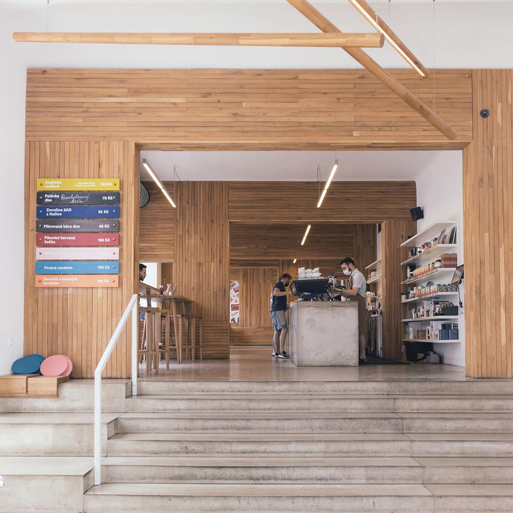 Místo is a quietly design-led coffee bar in Prague’s Dejvice, laid out as a sequence of intimate rooms with timber cladding and a bold wall mural that gives the space a soft, gallery-like pulse. Doubleshot’s coffees are served as espresso and clean filter, and the option to taste multiple coffees side-by-side makes it feel like a small, guided sampling room disguised as a neighbourhood hangout.