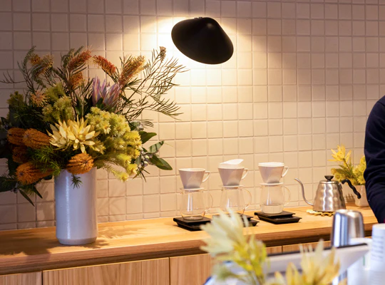 Market Lane Coffee Sydney Road is a light-filled Brunswick corner bar where textured Australian hardwood, warm terracotta tones and custom shelving by local designers give the room a soft, crafted feel that still reads as clean and modern. At the counter, espresso and filter are brewed with quiet precision from Market Lane’s current coffees, making this a relaxed neighbourhood stop that still feels carefully put together