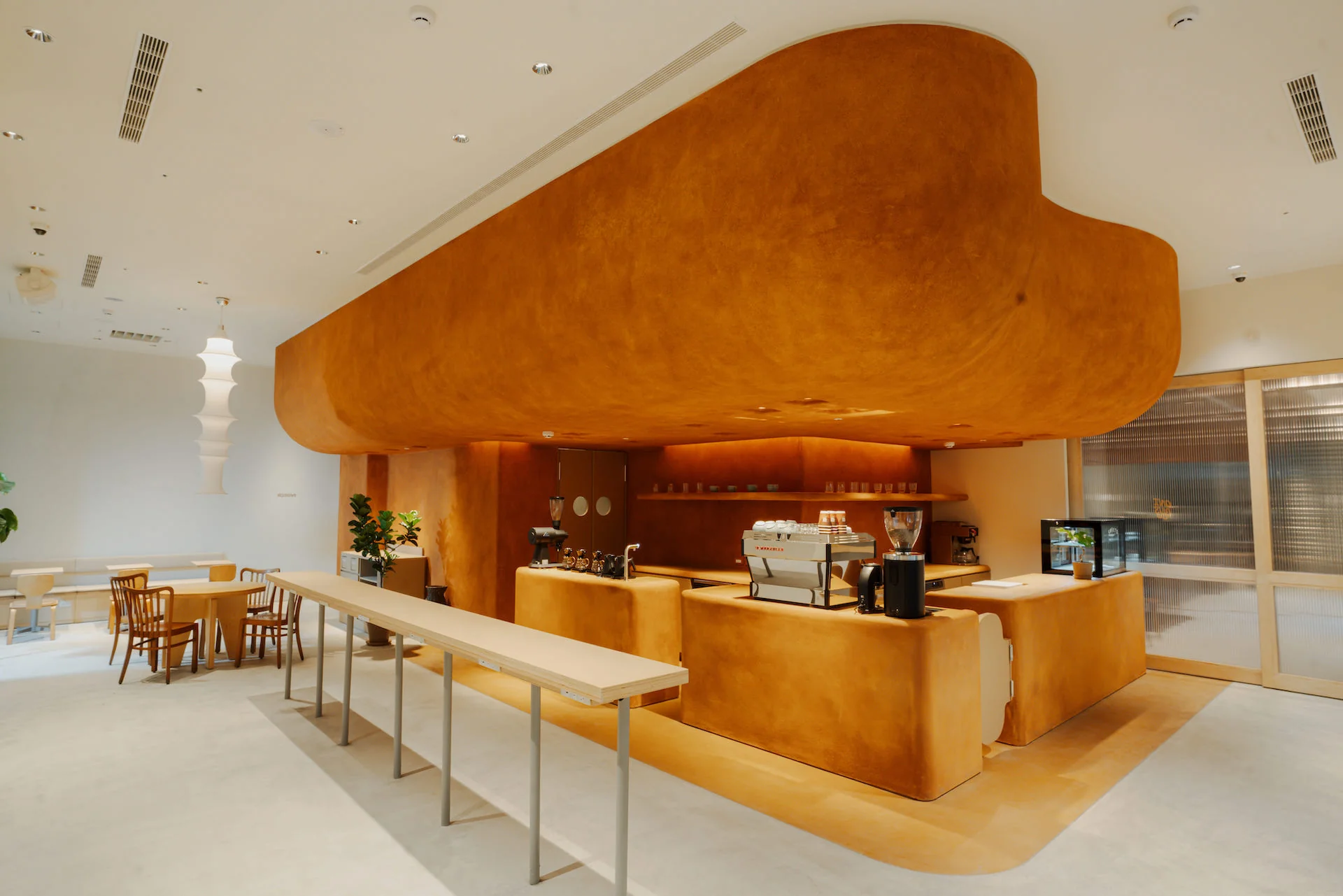 ONIBUS COFFEE Taichung is a striking, cave-like café along Taichung’s Calligraphy Greenway, where a sculpted red earth mound, soft white pendants and warm wood seating create a calm, earth-toned room around the bar. At the counter, ONIBUS’ light-roasted coffees from Japan are brewed as espresso and careful hand-drip to drink in or take out to the tree-lined path, turning this Taiwan outpost into a quietly dramatic stage for their modern Japanese coffee.