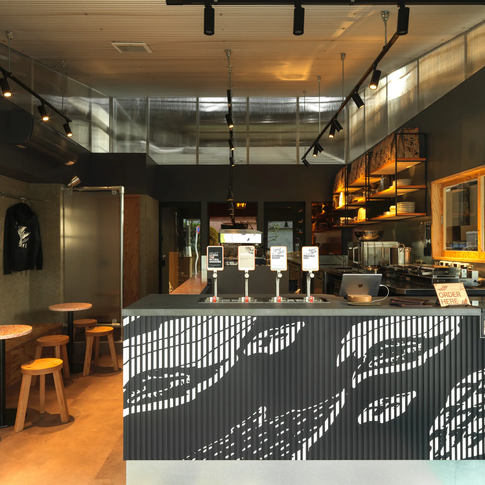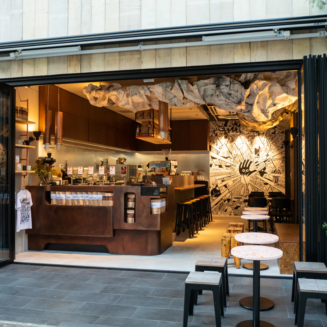Single O Newstead is a bright, mural-fronted café in an old Newstead warehouse, where skylights, cork banquettes and coffee-bag wallpaper give the room a sunny, slightly psychedelic feel around the long bar. Inside, self-serve batch brew taps sit alongside classic espresso service built on the Reservoir blend and rotating single origins, turning this first Brisbane outpost into a lively everyday hub for Single O’s coffee in the River City.